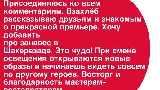 Как театр звучит в сердцах наших гостей? Какие эмоции они уносят с собой после премьеры? Мы собрали самые яркие комментарии, улыбки и признания в нашей рубрике. Смотрите пост, чтобы узнать, что зрители рассказывают о своих ощущениях - и, возможно, найти вдохновение для своего визита в театр! Спасибо каждому, кто был с нами в этот вечер. Отдельно благодарим за теплые слова: Елена Глуховкина, Ольга Сёмик, Инга Майорова, Елена Баркан, Елена Байцони и Тамара Гурьянова...