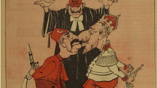 Русские вошли в Эрзурум, султан горюет среди своих постаревших жен. Султан говорит: "Помогите! Все пропало! Помогите же, бездушные! Не могу больше, помогите-еееее! Взяли Эрзурум! Они еще вперед пройдут! И где мы тогда найдем армян, чтобы использовать их, чтобы они кормили нас, а мы бы потом перебили их, согласно нашему обычаю. Помогите!" Взятие в крепости Эрзурум состоялось в феврале 1916 года. Тогда армия Юденича разгромила 3-ю Турецкую армию. Султан с карикатуры прав: битва под Эрзурум действительно открыла русским войскам дорогу вглубь стран...