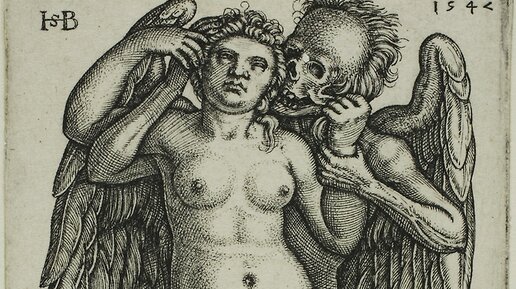 Мотив "Смерть и дева" в европейском изобразительном искусстве корнями уходит в древнегреческую мифологию. Прообразом послужил миф о похищении Персефоны, дочери богини плодородия Деметры, Аидом, богом царства мертвых. Изображение Смерти в виде скелета или чудища вместе с молодой девой стало очень популярным в конце 15 века в Германии, с наступлением Ренессанса. Изначально, этот мотив просто отображал неизбежность ужасов Смерти молодыми людьми, как например на гравюре Альбрехта Дюрера: Однако со временем у этого сюжета появляется более эротический подтекст...