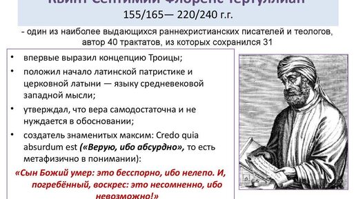 Не так давно в одной мусульманской группе опубликовали пост о богословии Тертуллиана, вот как он звучит: "Ранний христианский апологет Тертулиан был субординационалистом, а не тринитарием. Он верил, что Иисус Христос был сотворён, а не сущ-л предвечно" Насколько обоснованы такие скорополительные лозунги? Придется дать нам на них ответ. Мусульманские апологеты справедливо указывают на наличие субординационистских элементов в его учении, особенно в трактатах «Против Ермогена» (Adversus Hermogenem) и «Против Праксея» (Adversus Praxean)...
