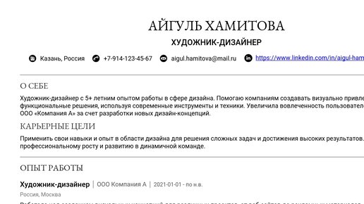 Пример резюме художника-дизайнера 2025 - Как составить
