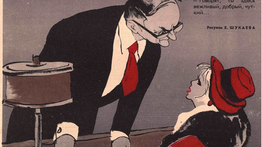 — Говорят, ты здесь вежливый, добрый, чуткий...» 1958. «— Пётр Иванович, примите товарища, у него большие задатки...