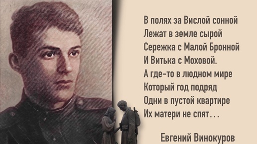 В 1955 году поэт Евгений Винокуров принес в журнал «Новый мир» стихотворение «Москвичи», написанное им несколько лет назад: Там синие просторы спокойной Сан-реки, там строгие костелы остры и высоки. Лежат в земле, зеленой покрытые травой, Сережка с Малой Бронной и Витька с Моховой. А где-то в людном мире, который год подряд, одни в пустой квартире их матери не спят. Свет лампы воспаленной пылает над Москвой в окне на Малой Бронной, в окне на Моховой. Друзьям не встать. В округе без них идет кино, девчонки их — подруги — все замужем давно...
