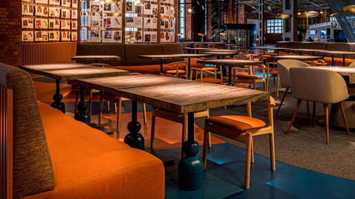 Глубокие, густые тона, мягкий свет и четкие формы не только делают пространство кафе притягательным и уютным, но и продолжают ноты, звучащие в интерьере Еврейского Музея и Центра Толерантности, при котором расположен «Ришон»...