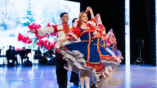 В Рождественские праздники в Уфе на сцене Городского дворца культуры Государственный академический ансамбль народного танца им. Файзи Гаскарова представил первые выступления 2026 года — праздничный концерт «Вихрь танца в Рождество». Концерты легендарного ансамбля проходят в рамках проекта «Пушкинская карта» нацпроекта «Семья». Программу открыла хореографическая композиция «Русь». В этот вечер были исполнены башкирские танцы, ставшие классикой: «Гульназира», «Проказницы» и другие яркие постановки...