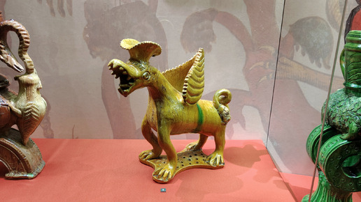 В Историческом музее с 26 марта по 21 июля этого года проходит выставка «Сказочные образы в русской керамике». Довольно компактная, всего лишь на два маленьких зала в так называемом Кабинете председателя в Главном здании. Но крайне симпатичная. В Скопи́нском уезде Рязанской губернии в последней трети XIX – начале XX века сложилась своя школа художественной керамики. Местные гончары изготовляли декоративные фигурные сосуды и маленькие скульптуры в виде сказочных фантастических существ. Или не всегда сказочных, но на вид таких, что в природе не встретишь...