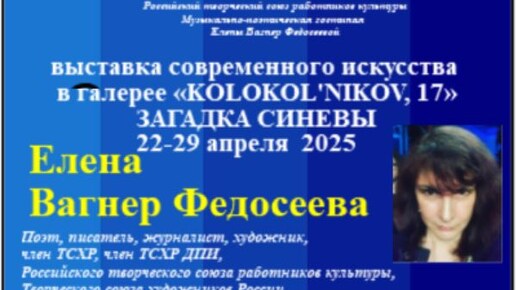 ЕВФ. Елена Вагнер Федосеева. Выставка живописи "Загадка синевы". 22-29 апреля 2025 г., Москва.