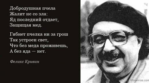 Феликс Кривин — поэт и прозаик, автор интеллектуальных юмористических произведений: басен, притч, миниатюр. Сотрудничал с Аркадием Райкиным, для которого писал интермедии. «Дистрофики» называются так, потому что по-гречески это значит «две строфы». Вот что говорится в предисловии к сборнику «Дистрофики»: «Всего лишь две строфы — и готово стихотворение. Некоторые дистрофики в прошлом были длинными, но время выбросило из них все строфы, кроме двух, самых необходимых. Этим дистрофики — стихи напоминают дистрофика — человека, от которого остались кожа да кости, то есть самое главное»...
