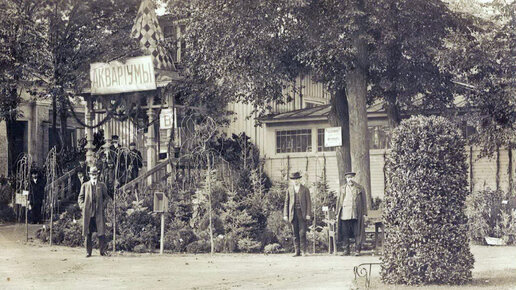 Люблю я исторические «аквариумные фотографии» вне контекста - где нет в лоб снятого сюжета «человека позирует и кормит рыбок». На этой фотографии 1915-го года вообще нет аквариумов - они где-то в павильоне здания...