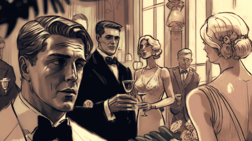 Роман "Великий Гэтсби" Фрэнсиса Скотта Фицджеральда разворачивается в 1920-х годах на Лонг-Айленде, Нью-Йорк. История следует за жизнью рассказчика Ника Кэрроуэя, когда он становится вовлеченным в жизни своих богатых соседей, включая загадочного Джея Гэтсби. Ник, родом из Мидвеста, переезжает в Нью-Йорк, чтобы начать карьеру в облигациях. Он арендует маленький дом в районе Вест Эгг на Лонг-Айленде, где становится соседом с таинственным и богатым Джей Гэтсби, который известен своими экстравагантными вечеринками...
