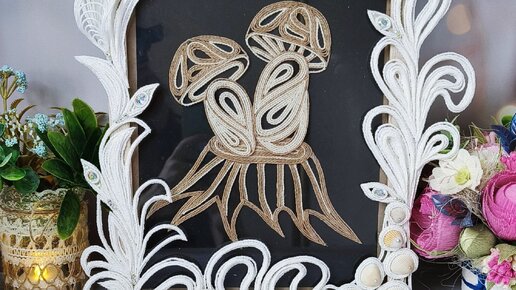 Сегодня мы сделаем с вами вот такую картину из ниток и джут в технике филигрань из ниток. С такой работой справится даже новичок, если пошагово пройдете со мной весь процесс. Кто ни разу не работал в такой технике можно посмотреть видео мастер-класс «Бабочка», там я очень подробно показываю, как подготовить инструменты, обработать нитку и сделать красивые стыки. Инструменты НОЖНИЦЫ КАНЦЕЛЯРСКИЕ самые обычные, лишь бы хорошо резали нитки. НОЖНИЦЫ МАНИКЮРНЫЕ или любой острый предмет, что бы заправлять концы ниток...