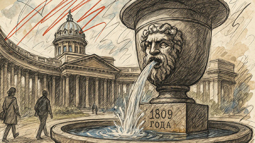Фонтан в сквере у Казанского собора кажется естественной частью ансамбля — как будто стоял здесь всегда. Но его история началась далеко за пределами Невского проспекта. В 1809 году мастер Генри Грауэр по проекту архитектора Тома де Томона установил этот фонтан не у собора, а на Царскосельской дороге — на тринадцатой версте. Он украшал дорогу и одновременно служил поилкой для лошадей — тех самых, что везли кареты к столице...