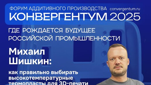 Михаил Шишкин: как правильно выбирать высокотемпературные термопласты для 3D-печати 👤 Генеральный директор компании ООО «РЭК» (REC) Михаил Шишкин выступит на форуме «Конвергентум 2025» с докладом о ключевых аспектах работы с высокотемпературными термопластами для FFF-печати. 🚀Его выступление будет особенно полезно специалистам из аэрокосмической, автомобильной и медицинской отраслей, где требования к материалам особенно высоки. Однако представленная информация будет интересна и другим производствам,...