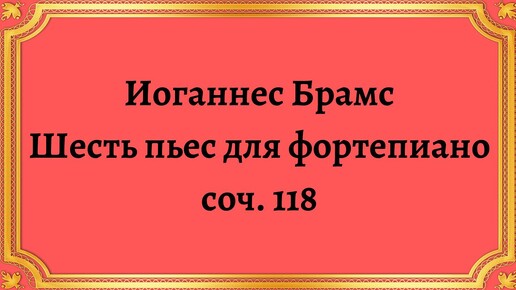 Иоганнес Брамс Шесть пьес для фортепиано, соч. 118