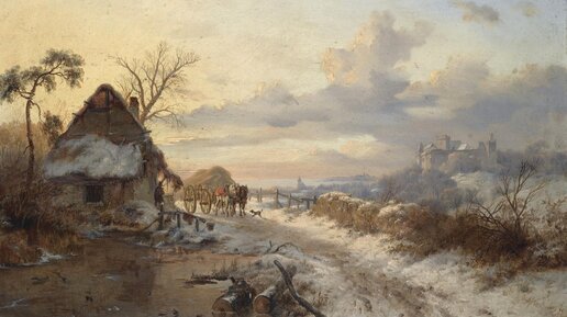 Фредерик Маринус Круземан (Frederik Marinus Kruseman; 1816, Харлем – 1882, Брюссель) – голландский художник-пейзажист.846_Зимний день (A winter's day)_29 х 42.5_д.,м._Частное собрание