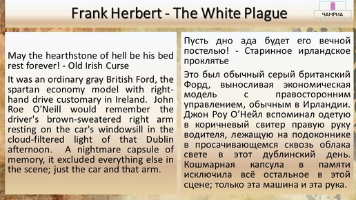 Чамриа - канал, посвящённый изучению английского языка1 год назадПодписаться25-002 Франк Герберт - Белая ЧумаFrank Herbert - The White Plague
