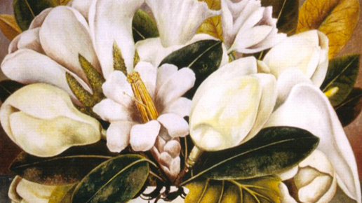 Фрида Кало "Магнолии". Японская девочка, круглая сирота Кейко делала бумажные цветы и продавала их на улице. Но таких девочек на улицах японских городов было много, и заработок был очень маленький. Девушка Кейко жила в жёсткой бедности, о шёлковом кимоно она и мечтать не смела. Кейко по-прежнему делала бумажные цветы, она работала даже по ночам. В одну из таких ночей к ней в окно залетел попугай. Странный попугай, вместо того, чтобы ночью спать, он залетает к девушкам в окна. Но может, он вестник Судьбы? Это был необычный попугай, старый, что сразу бросалось в глаза из-за его тусклого оперения...