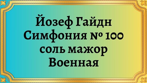 Йозеф Гайдн Симфония № 100 соль мажор Военная