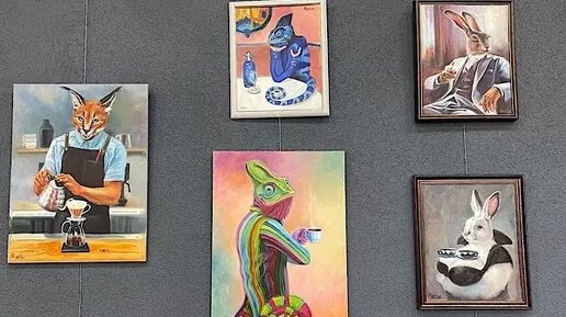 Самые неординарные полотна – из серии «Зверский кофе». Художница изобразила животных в совершенно для них новых ролях...