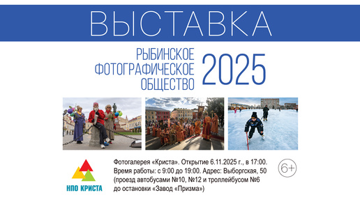 Рыбинские фотографы покажут свои лучшие творческие находки текущего года в фотогалерее «Криста» 6 ноября. В числе авторов – Анна Бадалян, Михаил Дружинин, Ирина Жукова, Елена Зимина, Александр Колляков, Вячеслав Коробов, Павел Костицын, Сергей...