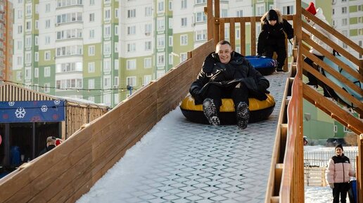 Хинштейн с сыном протестировал тюбинговые горки в Курске