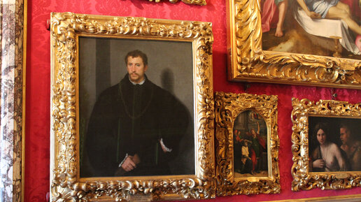 В статье "Сны о Флоренции" начинается мини-рассказ о галерее Палатина (палаццо Питти), а тут он продолжится, так как я продолжаю извлекать из недр компьютерной памяти фото путешествий по Европе. Помните портрет работы Тициана? Были сомнения по поводу названия. На подписи к портрету написано просто: "Ritratto virile", то есть - "Мужской портрет". Вверху и справа от портрета Тициана видим две работы Андреа дель Сарто ("Святое семейство" и "Пьета"): О флорентийском художнике периода высокого Возрождения...