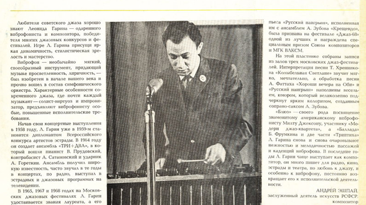 Из истории советского джаза: виброфонист и композитор Леонид Гарин
