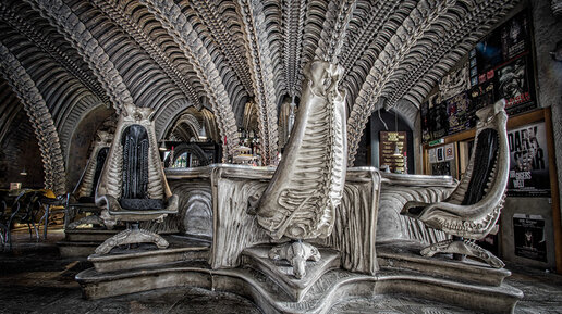 Ганс Рудольф Гигер - швейцарский художник, представитель фантастического реализма, наиболее известный своей работой для фильма «Чужой». Годы жизни 1940 - 2014. В мире есть 2 бара, где вы можете в полной мере ощутить всю силу воображения мастера, оба они находятся в Швейцарии. Во многих источниках указывается только один бар и часто вы можете видеть его название как Скелетон бар, но мы берем информацию с официального сайта художника и оперируем ей, сегодня вы узнаете о двух барах, оформленных в биомеханическом стиле...