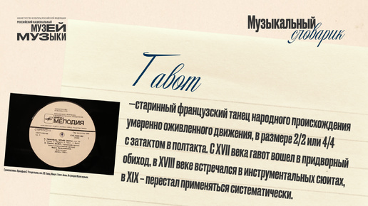 В рамках рубрики «Музыкальный словарик» сегодня разбираем термин «гавот». Гавот (фр. gavotte, от провансальск, gavoto) — старинный французский танец народного происхождения умеренно оживленного движения, в размере 2/2 или 4/4 (по сути, это одно и то же) с затактом в полтакта. С XVII века гавот вошел в придворный обиход, в ХѴІII веке встречался в инструментальных сюитах, в ХІХ перестал применяться систематически. В XX веке композиторы вспомнили о, казалось бы, навсегда забытом танце...