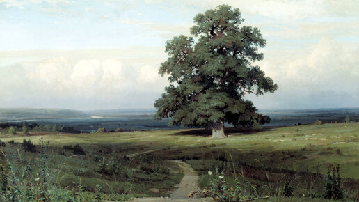 Иван Шишкин «Среди долины ровныя…», 1883 год На этой картине художник изобразил одинокий дуб, возвышающийся посреди степи. Его широкие раскидистые ветви создают густую тень, давая редкому путнику место для отдыха. Дуб выглядит очень одиноким и грустным, таким же, каким был Шишкин во время написания этой картины. Художник похоронил двух своих жён и двух сыновей, а также отца и близкого друга. Он был подавлен своим горем, бесконечно чувствуя боль утраты. Своё тяжёлое состояние мастер переносил на холст, изображая одинокие и печальные деревья. Некоторые из таких картин были навеяны стихами, как, например, сосна из произведения «На севере диком…», а также дуб из стихотворения Алексея Мерзлякова «Среди долины ровныя…» Среди долины ровныя, На гладкой высоте, Цветет, растет высокий дуб В могучей красоте. Высокий дуб развесистый, Один у всех в глазах; Один, один, бедняжечка, Как рекрут на часах! Взойдет ли красно солнышко - Кого под сень принять? Ударит ли погодушка - Кто будет защищать? Ах, скучно одинокому И дереву расти! Ах, горько, горько молодцу Без милой жизнь вести! Этот дуб Шишкин увидел во время прогулки за городом и сразу же вспомнил это стихотворение. Тут же перед его глазами предстал будущий пейзаж. Одиночество стало вторым "Я" художника… Это был и пейзаж, и автопортрет. В настоящее время картина «Среди долины ровныя…» является частью коллекции Киевского государственного музея русского искусства и пользуется большой популярностью у туристов.