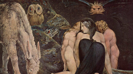 Одна из самых знаменитых картин английского художника Уильяма Блейка (1757 - 1827) "Геката" была известна мне давно. И с её интерпретацией, в принципе, у меня не возникало трудностей. На картине изображена Геката - древнегреческая богиня лунного света, покровительница ночи, всего таинственного, магии и колдовства. Вот она, темноволосая женщина, сама Геката, в окружении символов ночи. Тут тебе и летучая мышь, тут и сова, змея, жаба, и даже фантастический ночной монстр. Даже имеется магическая книга, незаменимый атрибут Гекаты...