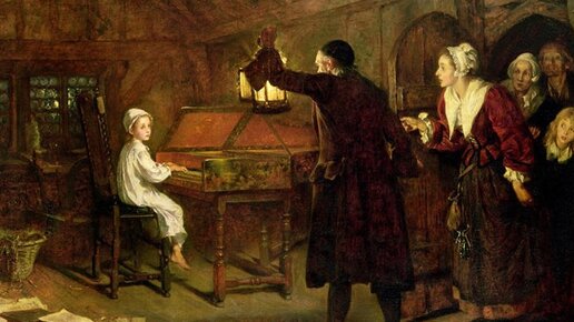 Увидев эту картину, я подумала: кто же этот мальчик, судя по всему, тайно играющий на клавесине, притом ночью, и застигнутый врасплох за этим занятием? О чем эта история? Выдумка художника или тут показан реальный случай? Прочитала название - "Гендель". Понятно, но почему такой сюжет? А оказалось вот что: Георг Фридрих Гендель родился в очень строгой религиозной семье. Кстати, родился в том же году, что и Иоганн Себастьян Бах. Папаша, как и положено семейному тирану, сам определял жизненную стезю своих детей, а их собственные интересы и наклонности его мало волновали...