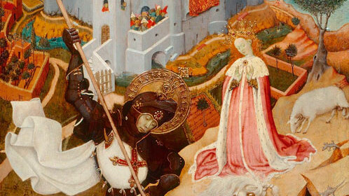Легенда о том, как Святой Георгий спас принцессу от змея, известна, наверное, всем. Художники эту тему любили. Существует множество картин, рассказывающих об этом деянии Георгия Победоносца. Сегодня мы рассмотрим лишь одну. И, надо сказать, одну из самых лучших. Это картина испанского художника 15 века представителя интернациональной готики Берната Мартореля. Картина