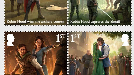 Королевская почта отмечает историю легендарного и популярного английского народного преступника Робин Гуда выпуском набора из десяти эксклюзивно иллюстрированных первоклассных марок. Десять новых специальных марок воплощают в жизнь легенду о Робин Гуде и его спутниках благодаря иллюстрациям, эксклюзивных для этих марок Королевской почты. На каждой марке изображен элемент знаменитой легенды о Робин Гуде; от объявления вне закона, затем встреча и руководство своими веселыми людьми, его женитьба на Деве Мариан и его смерть...