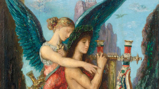 Картина «Гесиод и муза» была написана французским художником Гюставом Моро. Моро был поклонником древнегреческой культуры, что и нашло отображение на его полотнах. На картине мы видим прекрасного юношу Гесиода — величайшего древнегреческого поэта, который жил примерно в 700 г. до н. э. Мальчик рос в бедной крестьянской семье и был пастухом. Однажды, когда Гесиод был уже юношей и пас овец, к нему явились музы — богини-покровительницы искусств. Они сообщили парню, что он избран ими, а также вручили жезл из лавра — отличительный знак рапсода...