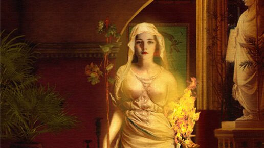 Гестия, богиня семейного очага и жертвенного огня, незаслуженно обойдена вниманием художников. Это сейчас её порой изображают художники в образе юной красавицы, как сделал, например, американский художник Говард Дэвид Джонсон. И то не поймешь, картина это или фотомонтаж. Художник работал и в том, и в другом направлении. Удалось найти лишь одно доступное изображение на шерстяном гобелене, изготовленном в Египте в шестом веке. Существует еще немного скульптур с изображением богини. Почему так случилось, не знаю...