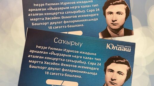 Радио «Юлдаш» проведет вечер, посвященный творчеству поэта-песенника Гильмана Идрисова. Он состоится 24 марта в Башкирской государственной филармонии имени Хусаина Ахметова (6+). В программе выступят звезды башкирской сцены Резида Аминова, Фарваз Урманшин, Фан Валиахметов, Халит Фатихов, Газим Ильясов, Расуль Карабулатов, Рафис Ишбаев и другие. Принимает также участие внучка Идрисова Розалия Нугуманова. Гильман Идрисов — заслуженный работник культуры Башкортостана, журналист, поэт-песенник, автор песен, полюбившихся не одному поколению...