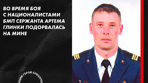 ВО ВРЕМЯ БОЯ С НАЦИОНАЛИСТАМИ БМП СЕРЖАНТА АРТЁМА ГЛИНКИ ПОДОРВАЛАСЬ НА МИНЕ АРТЁМ ПРОДОЛЖАЛ ВЕСТИ ОГОНЬ, НАХОДЯСЬ В ГОРЯЩЕЙ МАШИНЕ НЕСМОТРЯ НА ОЖОГИ, ЕМУ УДАЛОСЬ УНИЧТОЖИТЬ 4 АВТОМОБИЛЯ БОЕВИКОВ