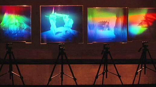 В большинстве работ, выполненных в голографической технике, авторы используют уникальные свойства голографического изображения и разнообразные схемы записи, сочетающие порой самые удивительные технические приемы. Возникает закономерный вопрос, - как мастера находят необычные решения для реализации своих художественных идей? Живописцы могут поменять краски и кисти, скульпторы использовать новый материал, графики - способы нанесения изображения на плоскость. Голографистам же приходится долго трудиться...