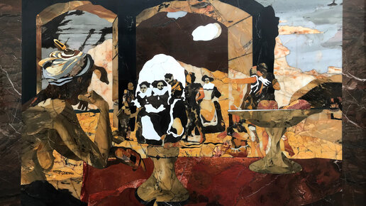 Мастерская флорентийской мозаики Александра Горбунова. Из коллекции музея Флорентийской мозаики им. Бориса Ошкукова в СПБ. Мозаичная мастерская Александра Горбунова существует с 1994 года, сначала в Сибае, а с 2011 в Санкт-Петербурге. Множество мозаичных великолепных работ вышло из неё. Руководитель мастерской прекрасно разбирается в технологических тонкостях пластинчатой мозаики. Мозаичная работа Александра Горбунова по мотивам живописного полотна Генриха Семирадского (1843-1904) "Танец среди мечей" (1881), была создана в Сибае в 2010 году специально для музея-квартиры Флорентийской мозаики...