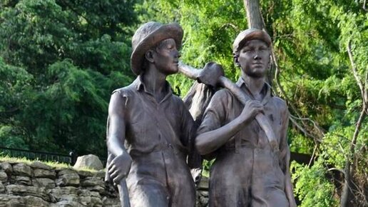 После Сент-Джозефа наш путь лежал на восточную окраину штата Миссури в город Ганнибал (Hannibal), это около 320 км. Городок в 18 тыс. человек известен как родина Марка Твена и прообраз города, где жил Том Сойер. Именно на этих двух именах и построена туристическая привлекательность города.