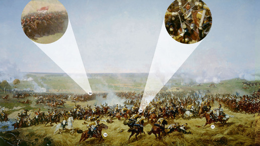 Астраханские кирасиры на панораме Рубо "Бородинская битва". Бой во ржи. Разбор неточностей.