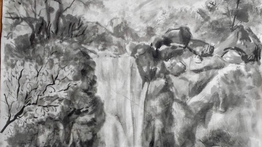 Горы и воды или шан-шуй 山水 по-китайски, это жанр пейзажа в гохуа (традиционной китайской живописи). Я очень люблю писать пейзажи и, едва начав осваивать тайны гохуа, тут же попробовала себя в этом жанре. Первые мои опыты были беспомощны и с большим количеством ошибок, но осознала их я, конечно, сильно позже. В таком пейзаже всегда присутствуют горы, реки, водопады, сосны и туманы. Туманы - визитная карточка гор Хуншань, расположенных на востоке Китая в провинции Анхой. Эти горы с древних времен - главные действующие лица в пейзажах китайских мастеров...
