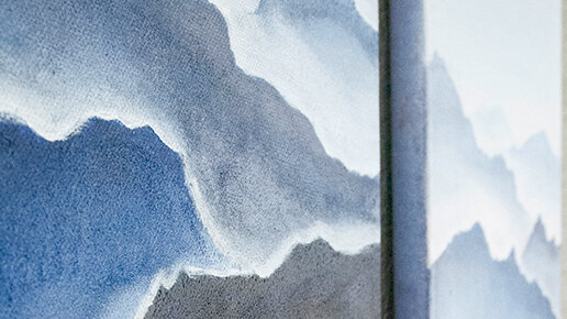 Техника исполнения проста, последовательна и доступна даже начинающим. Времени, материалов и художественных навыков требуется минимум, а в результате масса удовольствия от процесса и замечательная интерьерная картина с таким заманчивым сюжетом — природа, воздух, горы. Для создания простого пейзажа для начинающих нам понадобятся: • холст; • Акриловые краски «Акрил-Арт». Палитра: Ультрамарин, Голубая ФЦ, Белила Титановые и Пурпурная; • губка для посуды; • бумага для трафарета, совпадающая по размеру с холстом; • простой карандаш; • кисти синтетические...