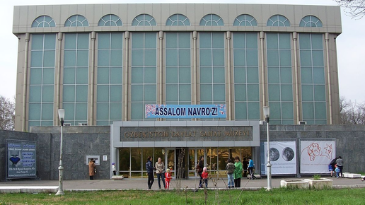 Музей искусств Узбекистана — основан в 1918 г. как Музей Народного Университета, с 1935 г. переоборудован в Государственный музей искусств Узбекистана. С 1918 по 1935 гг. музей находился в Ташкенте в бывшем дворце князя Николая Романова, с 1935 по 1966 гг. — в здании Народного дома. В 1974 г. на этом же месте построено новое четырехэтажное кубическое здание музея. Фасады расчленены на квадратные элементы конструкциями металлического каркаса, облицованного снаружи штампованными листами анодированного алюминия, стены цокольного этажа и портальный вход — серым шлифованным мрамором...