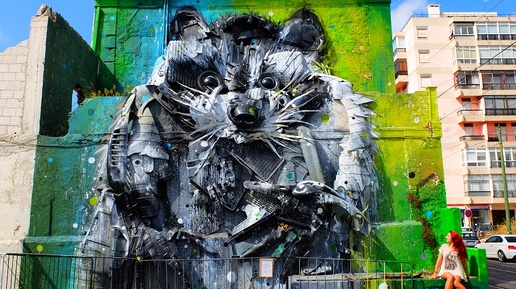 Лиссабон настоящая столица уличного искусства. Здесь даже есть госструктура, которая курирует стрит-арт. Bordalo II прославился серией Trash Animals объёмных граффити-инсталляций из мусора. Его енот — не просто рисунок, а яркое напоминание об экологических проблемах...