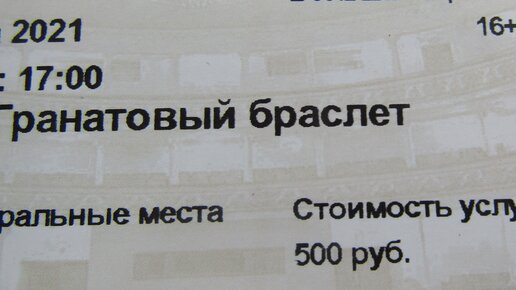 Захотели порадовать себя и приобрели билеты на премьеру спектакля по «Гранатовому браслету» Куприна в Театр драмы. Выбрали хорошие места – бельэтаж, центральные места во втором ряду.