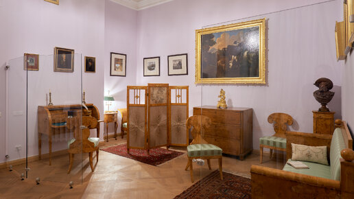 Комнаты за Греческой галереей в Гатчинском дворце изначально были открытой колоннадой и выходили окнами в Собственный сад! Сегодня в них открыта экспозиция, которая знакомит посетителей с повседневной жизнью дворца рубежа XIX-XX вв. Все из фондов музея: мебель, живопись, графика, предметы декоративно-прикладного искусства. В 1910 году в комнатах за Греческой жила графиня Е.Л. Камаровская, воспитательница старшей дочери Ксении Александровны. В своих воспоминаниях графиня оставила описание этих комнат:...
