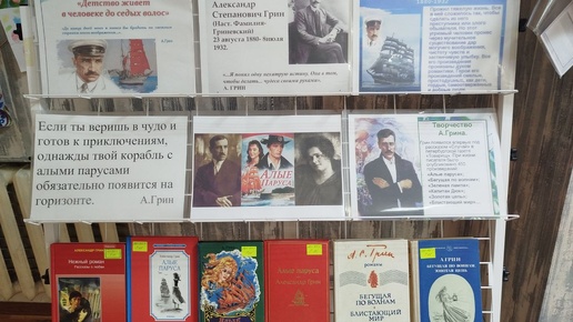 📚Вдохновение миром Александра Грина📚 В Районной Библиотеке г. Васильевка открылась книжная выставка, посвящённая 145-летию со дня рождения великого романтика и мечтателя — Александра Грина! Его произведения — это не просто книги, а целый мир, наполненный приключениями, смелыми героями и верой в чудо. Кто из нас не мечтал увидеть алые паруса, плывущие по...