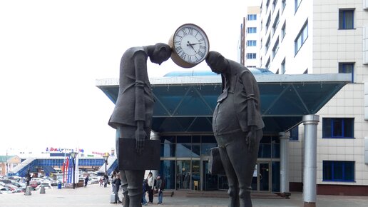 Вокруг большого торгового комплекса "ГРИНН" можно ходить долго, рассматривая орлов, литераторов и "Колесо истории"... И не удивляйтесь, если вам на глаза вдруг попадётся паровоз! С работниками железнйо дороги и пассажирами :) Ну а раз Париж, то и Эйфелева башня должна быть. А это чиновник и предприниматель Понравилась экскурсоводша! Ещё мило выглядит памятник семье...